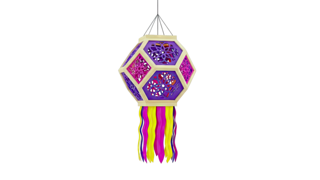 Ornate Octagonal Paper Lantern with Colorful Ribbons