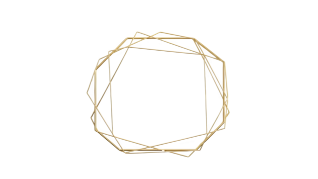 Gold foil overlay frame with scattered geometric shards and minimal polygon shapes on edges, futuristic aesthetic, white background, isolated to transparent background