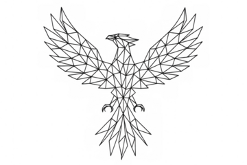 Low poly phoenix spreading its geometric wings, a symbol of rebirth and renewal, on a transparent background