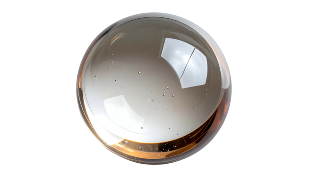 A luminous, transparent sphere with internal reflections, isolated on a stark black background