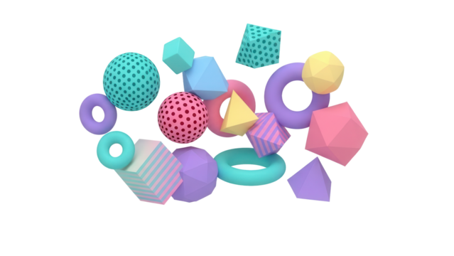 Set of abstract geometric 3d rendering shapes, trendy playful isolated design elements