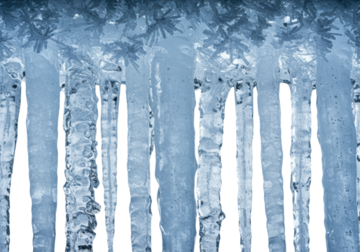 Three pale icy blue, geometrically perfect crystalline snowflakes suspended against a transparent background with ample copy space, rendered in ultra-detailed 3d. concept of festive winter elegance