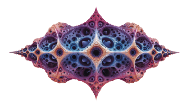 Digital fractal rendering showing complex symmetrical geometry and infinite details, representing technology and data