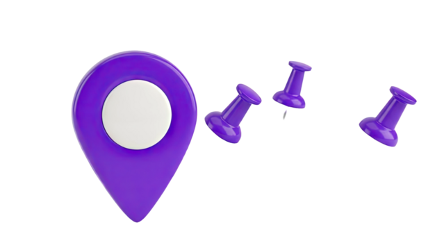 Purple Map Pointers and Pushpins