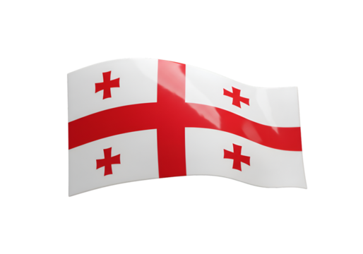 A realistic 3D render of the Georgian flag with its five red crosses on transparent background