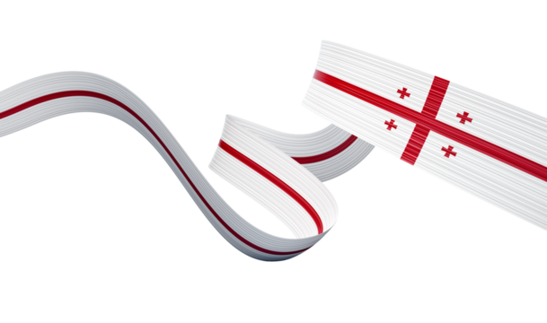 Graceful Swirls of the Georgian Flag with Bold Red Crosses on White Canvas