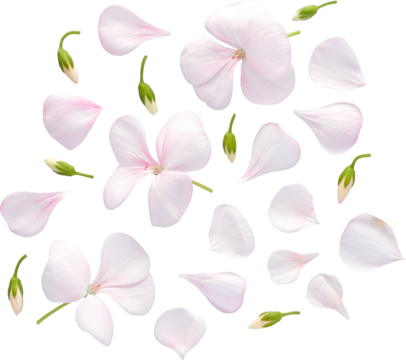 Set of pink flowers and geranium petals. Floral isolated design element, top view / flat lay.Set of pink flowers and geranium petals. Floral isolated design element, top view / flat lay.