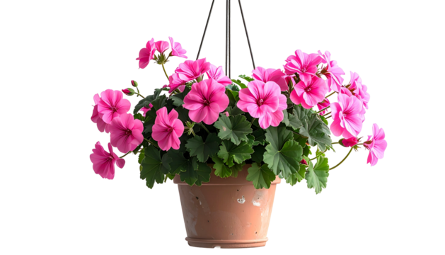 “Terracotta Flower Pot with Blooming Pink Geraniums, PNG”