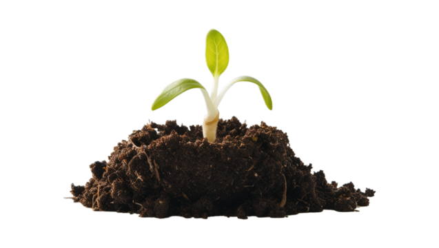 Pine tree sapling in fresh soil on transparent background(PNG)