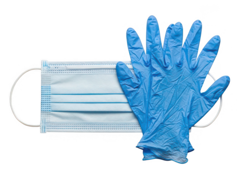 Face mask and gloves for protection isolated on transparent background