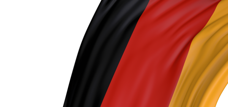 Germany flag background with cloth texture. Realistic Flag of Germany on the wavy surface of fabric.