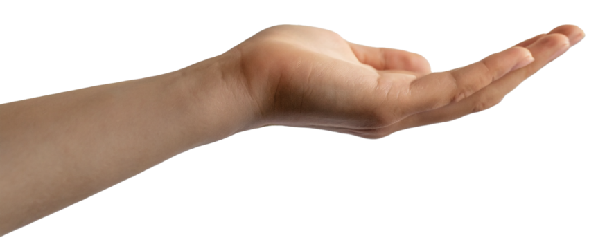 Caucasian hand gesturing on transparent background: symbol or sign concept