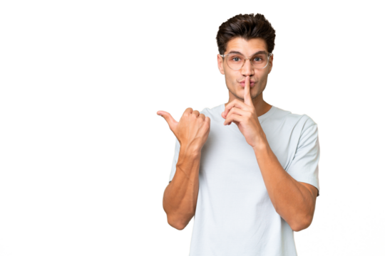Little caucasian girl over isolated background showing a sign of silence gesture putting finger in mouth