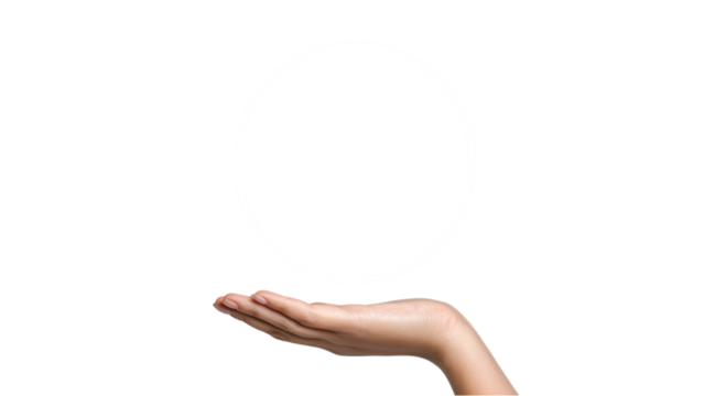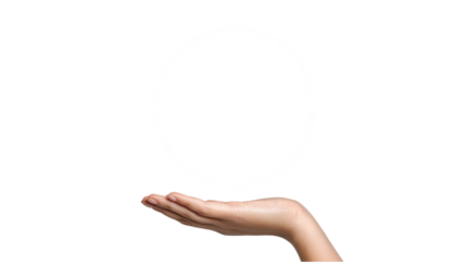 Woman hand with palm facing upwards extends, creating empty space for holding, receiving, or presenting an object, concept, or text on a clean background