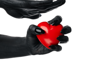 PNG, painted hands holding a heart, isolated on white background.