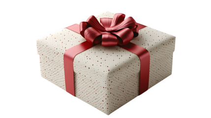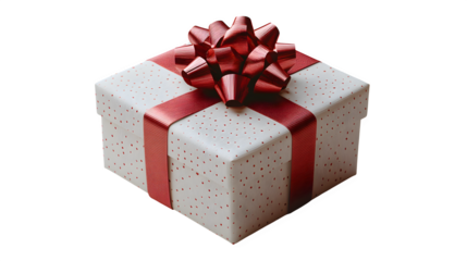 Playful Santa hiding face behind giant holiday gift box isolated on transparent background