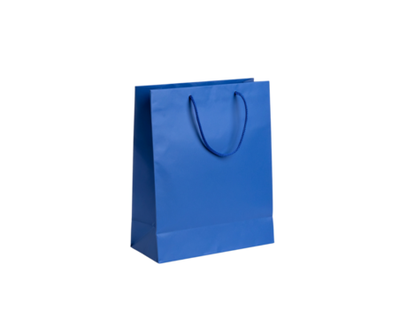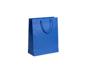 Blue Gift Bag: A simple yet elegant blue gift bag with white handles, perfect for presenting gifts or carrying purchases, exuding a sense of sophistication and preparation.
