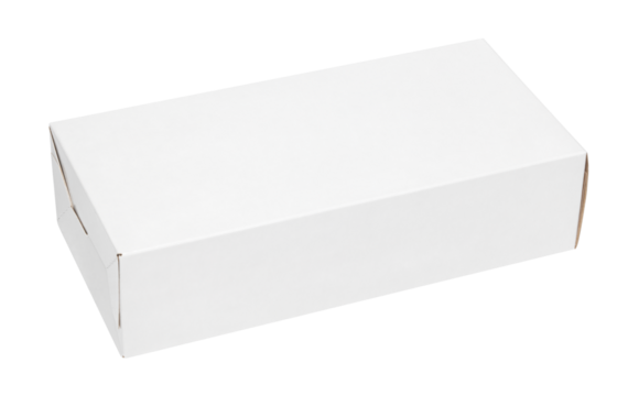 A plain white box on a simple background, often used for packaging or storage purposes.