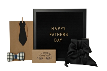 PNG, bag with tie, father's day gift concept, isolated on white background.
