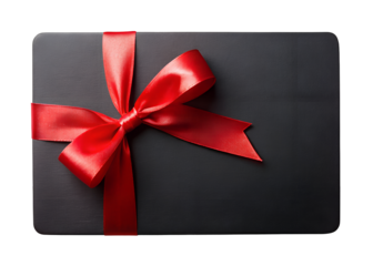 black gift card with red ribbon clipart png image on transparent background