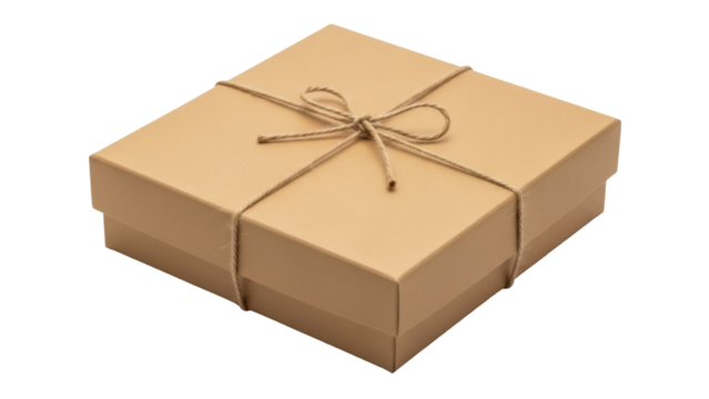Isolated cardboard gift box with string bow for special occasion present wrapping design