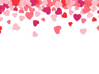 Colorful pink and red hearts falling from top on transparent background for valentines day or love concept