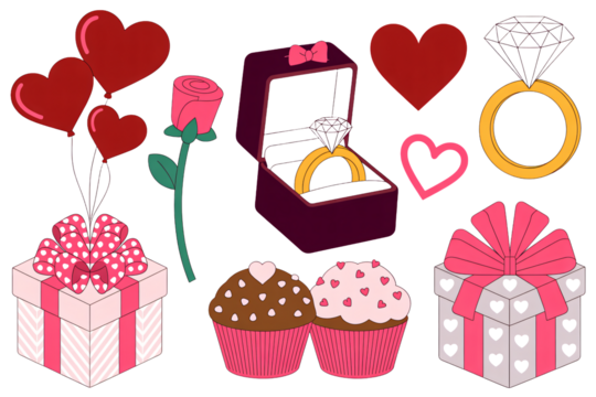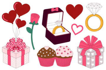 Valentines Day gifts and jewelry in romantic illustration with pastel colors and digital graphics for greeting cards