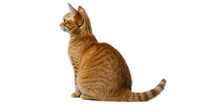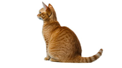 Portrait of a ginger cat, sitting and looking at camera. Isolated on transparent background.