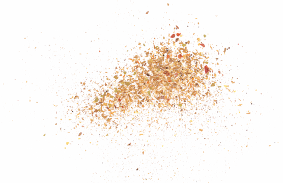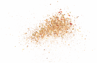 Garam masala, minced spice blend, mix black pepper, coriander, cumin, garlic granules, allspice, sea ​​salt, ground chili peppers, cinnamon, cloves grain, chopped ginger, bay leaves isolated on white