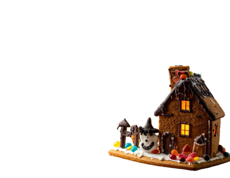 Delicious gingerbread house with candy decorations and heart window christmas holiday festive season baking isolated on transparent background