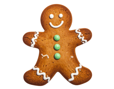 Gingerbread cookies with icing, featuring a gingerbread man, star, and other shapes.