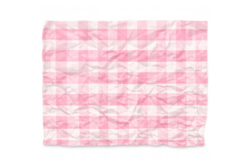 Crumpled pink gingham pattern with white checks, a textured fabric background for party or picnic designs on transparency