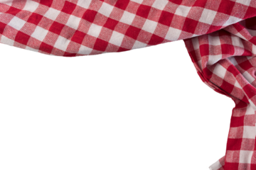 Above of placemat fabric cloth or arrangement of gingham-patterned fabrics in pastel green tones, isolate on a white background.For food decoration menu design