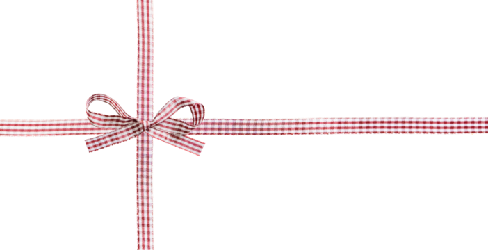 Gift Bow Ribbon, Isolated Photo Coquette In Red Gingham Pattern For Flyer Greeting Birthday Card Menu. Transparent Background