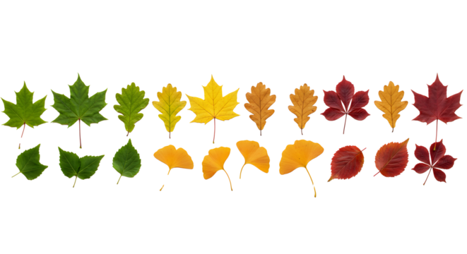 Vibrant autumn leaves showcase seasonal color change from green to red