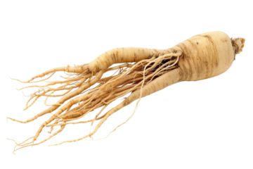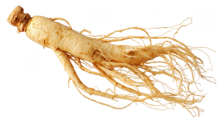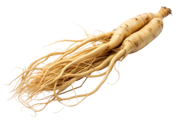 A fresh ginseng root with many tendrils isolated on a transparent background