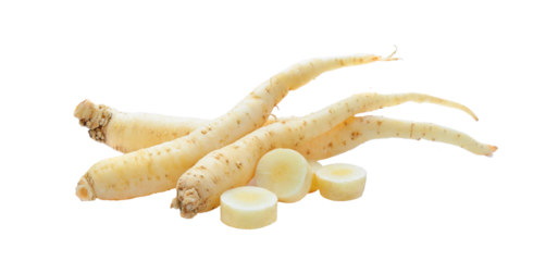 Fresh Ginseng Root on White Background - High-Quality Image of a Single Ginseng Root with Detailed Texture and Natural Color