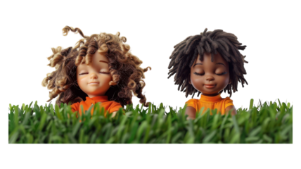 Girl swinging sideways view, windswept hair in striped outfit, playful childhood activity and movement frozen, isolated on a transparent background