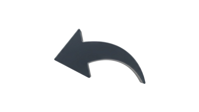 3D Dark gray reply arrow icon with rounded corner on transparent background