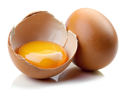Three cracked iridescent eggs, rendered with light and shadow, on a black background