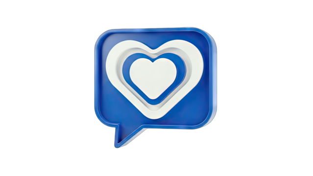 3D Red speech bubble with white heart and distressed texture on transparent background