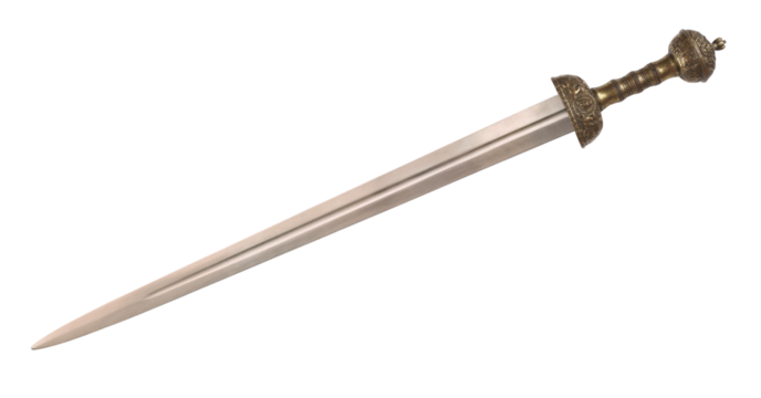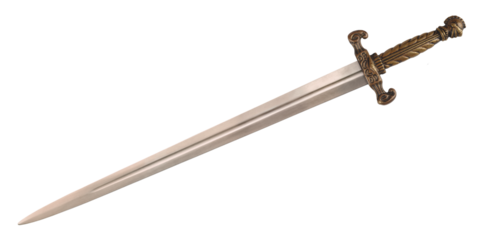 High-Quality PNG Old sword medieval weapon blade knight equipment with ornate handle isolated on white background – High Resolution