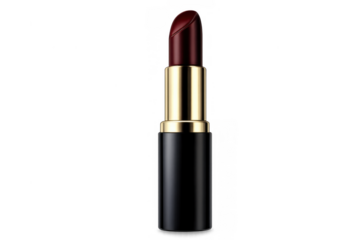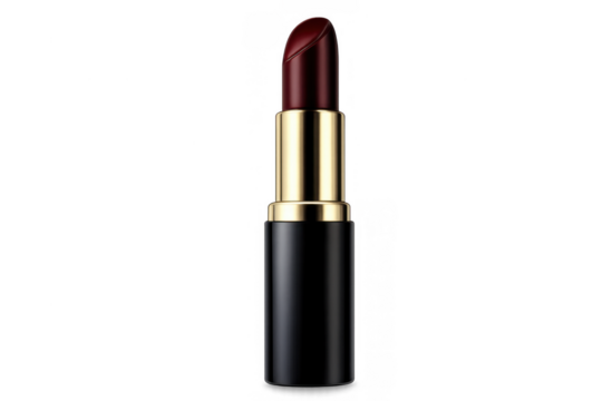 Dark red lipstick tube in black and gold packaging, providing beauty and cosmetic product concept on transparent background