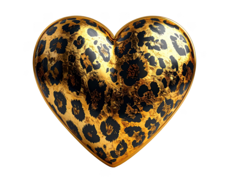 3D golden heart with a luxury animal print engraving,white background