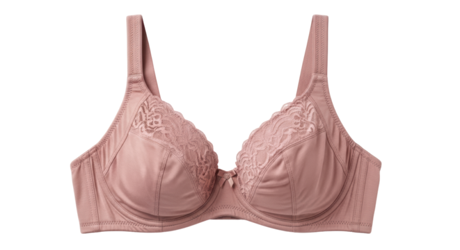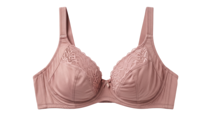 Pink embroidered lehenga with gold detailing on mannequin, isolated on a transparent background