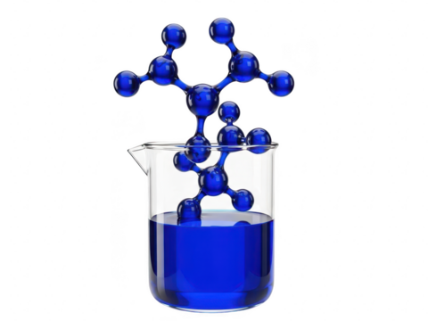 Laboratory glassware filled with blue liquid, science, chemistry, and research concept
