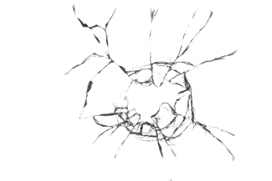 Texture of cracked smartphone screen on white background. Broken screen, set of 4 photos.