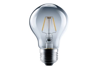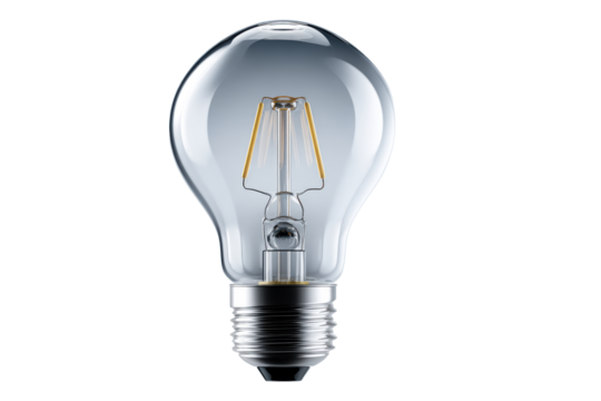 Classic light bulb with a glowing filament, detailed and realistic, isolated on a white background