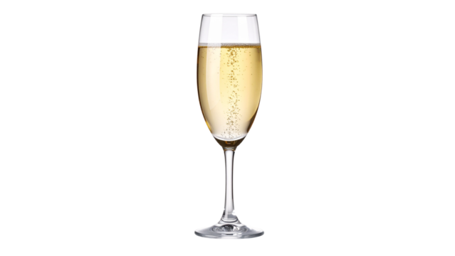 Sparkling champagne glass on transparent background for celebrations