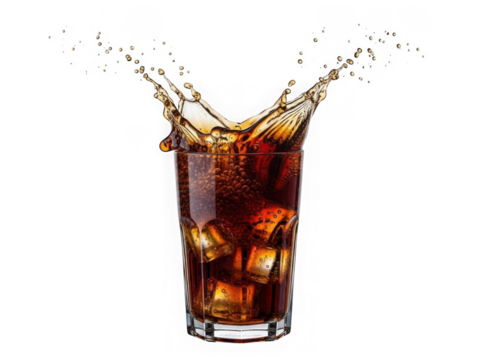 Soda splash in glass isolated on transparent background